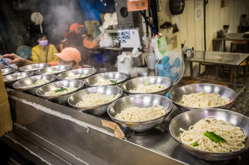 永川牛肉麵的煮麵區,永川牛肉麵除了牛肉麵出名外,這裡的阿姨也很親切,如果常來的話阿姨也會認出你跟你聊天,煮麵的地方很像是戰鬥區域,阿姨分工非常完成,而且出麵速度超快,以前是外包製麵,後來因為量太大,就自己製麵了