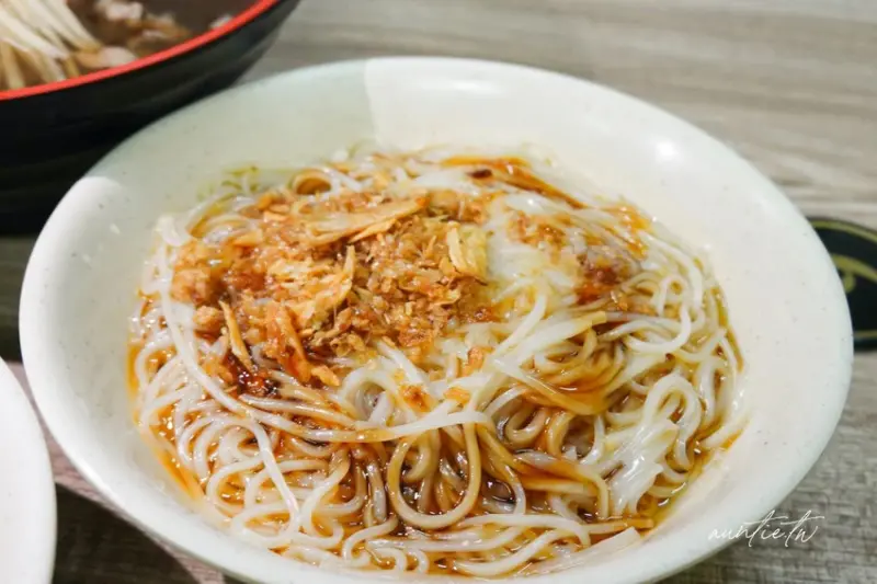 除了暖心暖胃的羊肉湯,店內的「滷肉飯」同樣擁有超高人氣,堪稱是必點的黃金配角,這裡的滷肉飯色澤深邃,呈現誘人的黑金色,滷汁將肥瘦相間的豬肉滷得極為透徹軟爛,入口幾乎不需咀嚼便化為滿口的膠質與鹹香。醬汁給得非常大方,每一粒米飯都能均勻沾附,濃郁的滷汁中還帶有一絲淡淡的中藥香氣,風味層次豐富,讓人忍不住一口接一口迅速扒完整碗飯。