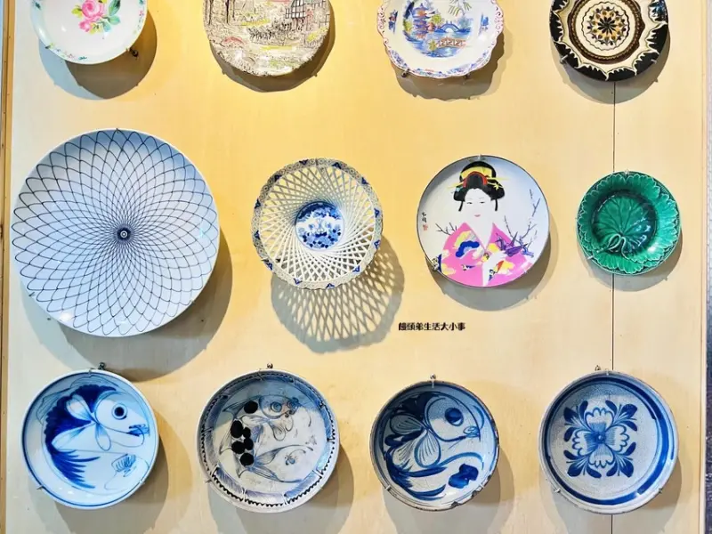 走進「宜蘭碗盤博物館」,最先映入眼簾的便是那面令人嘆為觀止的「浮空碗盤牆」,數以百計的碗盤彷彿懸浮在空中,形成一道壯觀的藝術裝置,光是這個入口就足以讓人拍上好幾張照片。館內的收藏數量超過上萬件,從充滿懷舊氣息的台式古早味瓷碗,到帶有異國風情的精緻盤器,每一件收藏品的背後,都代表著一個時代的記憶與工藝技術,不僅僅是靜態的展示,更是一場穿越時空的美學饗宴。