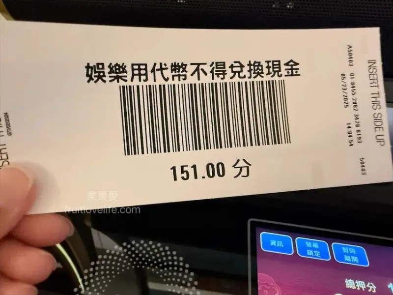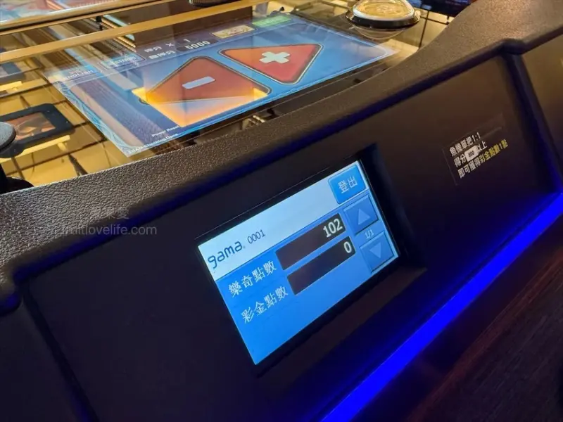 這裡要稍微提一下,每結束一台機檯記得先按洗分鍵,機台會出一張更新分數後的票分券,之後記得在輸入帳號的顯示器按登出,才有辦法繼續玩下一台。