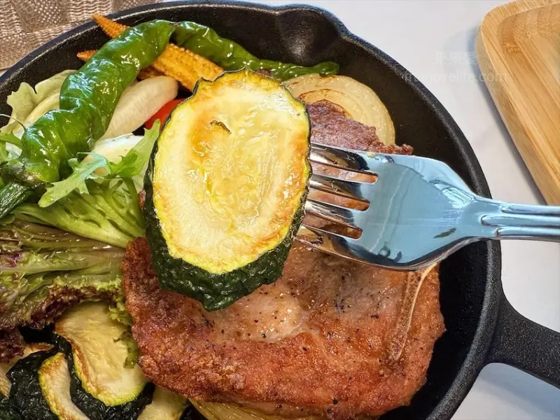 蔬菜有櫛瓜、洋蔥、玉米筍放、剝皮辣椒、生菜,每一種都保有蔬菜的脆口、湯汁跟鮮甜。