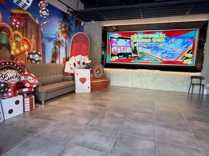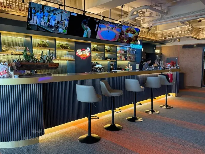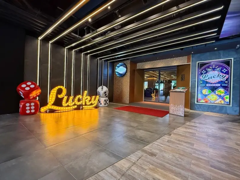 正對面除了是麗寶賽車主題旅店-T11館外,2024年12月1樓也正式進駐了一家全台唯一拉斯維加斯體驗餐酒館,屬於大人系的複合式餐飲空間,叫做樂奇Lucky Club台中麗寶店。