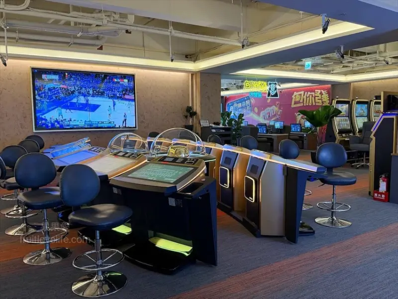 左手邊是多元遊戲區,右手邊則是用餐區,來到這裡不玩遊戲機台也是可以的,當日低消300元沒有限時。