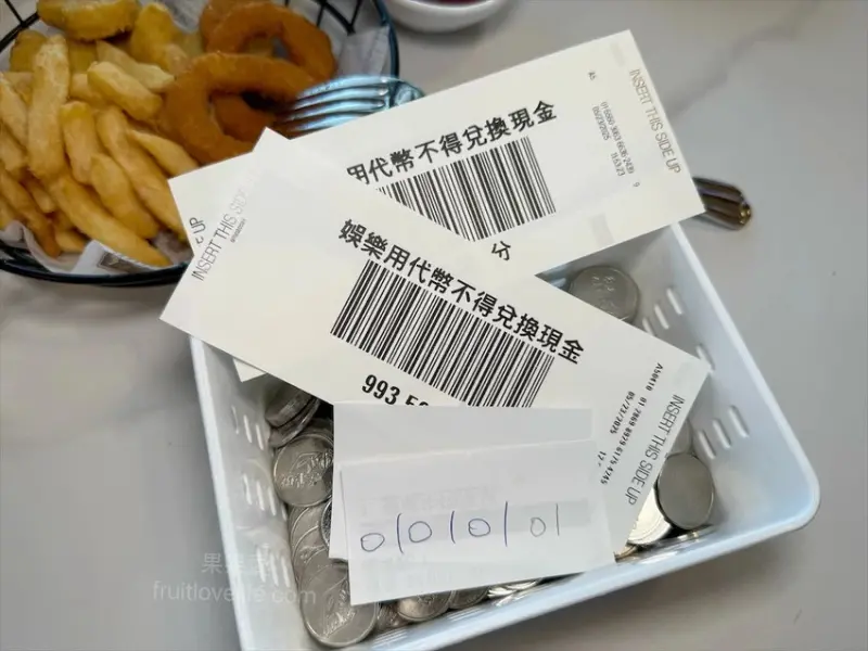 基本上店內除了飛鏢機之外,都可以登入帳號累計樂奇點數,部分以代幣玩的機檯則是出彩票,彩票則是一張1.5點由工作人員協助計入帳號。