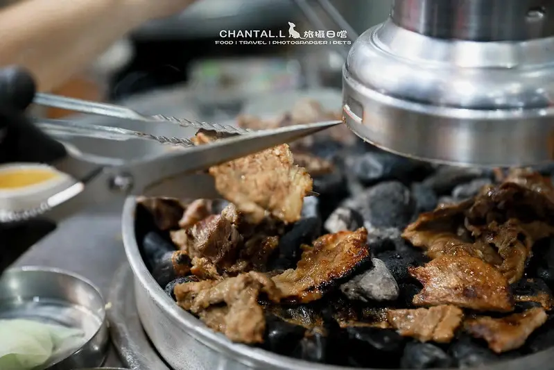 這家店最大的亮點,就是使用厚實的玉石板作為烤盤,有別於一般網狀或鐵盤燒烤,店員會先在加熱後的玉石上灑水,待蒸氣升騰後再鋪上新鮮肉片,滋滋作響的聲音與瞬間竄出的香氣非常迷人,透過玉石的高溫炙燒,能讓肉片外層帶有微微的炭燒焦香,同時鎖住內層的鮮美肉汁,店員還會提供全程代烤服務,並細心將烤好的肉剪成小塊,讓顧客能以最完美的狀態品嚐。