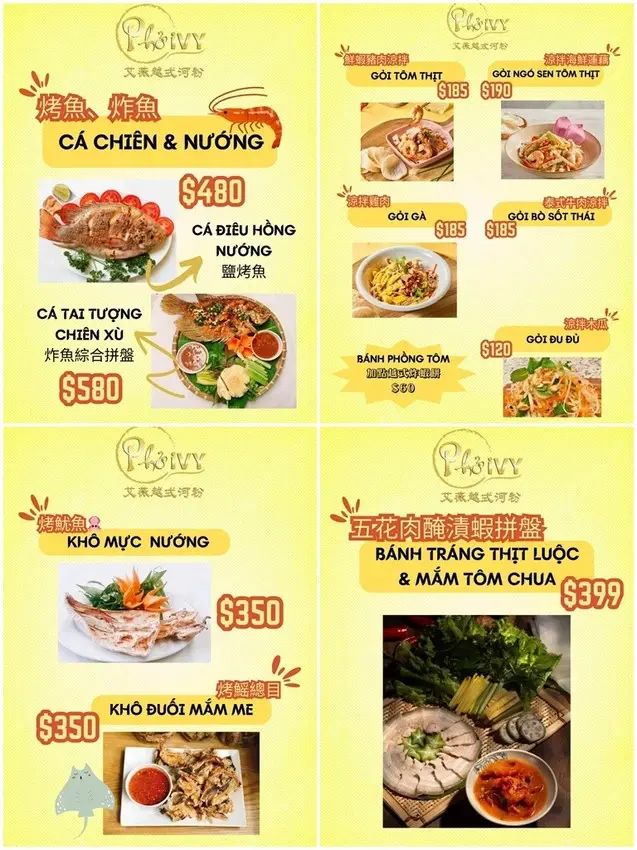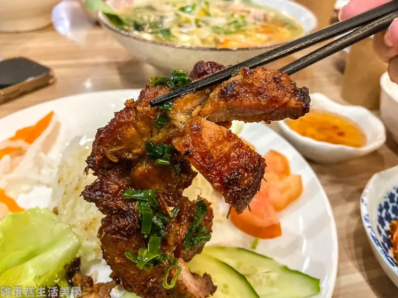 艾薇越式河粉的湯頭表現優秀,濃郁且清香,被許多食客給予高度肯定。如果喜歡重口味一點的湯麵,可以試試海鮮冬粉。海鮮冬粉的配料非常真材實料,裡頭有新鮮的小捲、鮮蝦和軟嫩的豬肉片。小捲和鮮蝦都帶有脆度,可以吃出海產的新鮮感。冬粉的軟硬度煮得恰到好處,充分吸附了湯頭的香氣。如果點飯類,越式香烤豬排飯也是不敗的選擇,烤肉的肉質厚實且軟嫩,店家已經貼心地協助剪開,方便客人食用。豬排上層層堆疊的醬料已經完全滲透進肉中,非常夠味。配菜豐富,有煎蛋、生菜、蘿蔔絲、小黃瓜和番茄,搭配附上的沾醬一起享用,美味又飽足。