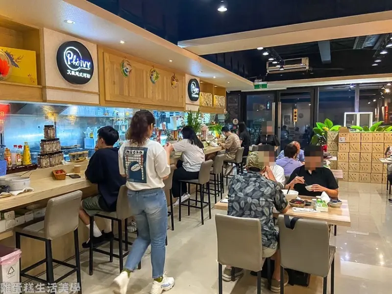 艾薇越式河粉提供了新竹用餐環境少有的優質服務體驗,店員會主動將茶水、調味品和餐具送到桌邊,讓客人感受到備受禮遇的感覺。如果開車前往,可以停在附近的Times新竹崇和路停車場或Times新竹埔頂一路停車場,步行大約2分鐘就能到達,交通上相當便利。店內用餐環境寬敞舒適,1樓和2樓都設有用餐座位,包含適合多人聚餐的4人方桌以及吧檯座位區。值得一提的是,店裡的廚房採用透明玻璃隔間,客人可以清楚欣賞到主廚在廚房內烹飪的過程,衛生看得到,讓人吃得更安心。