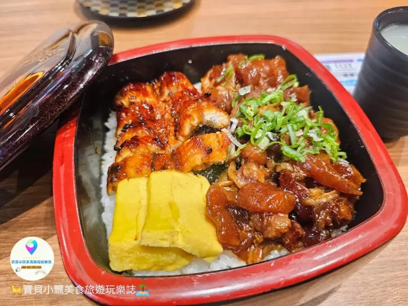 在眾多菜色中,「活力元氣鰻丼」是許多人點單的首選。這份鰻丼一上桌就讓人驚呼連連,因為一整條長形鰻魚覆蓋在白飯上。微焦的魚皮散發出淡淡香氣,甜中帶鹹的蒲燒醬滲進米飯裡,每一口都帶著濃濃的日式風味。鰻丼底下厚實的玉子燒更是加分的亮點。玉子燒口感軟嫩微甜、層層分明,讓整碗鰻丼吃起來層次十足。