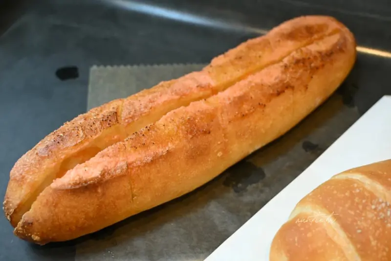 「明太子法國麵包」也表現非常優秀。它的口感很酥脆,明太子味道鹹香夠味,讓人一吃就上癮。另外,店裡的紅豆麵包口感柔軟蓬鬆,紅豆泥的甜度是很日式的風味,但味道很不錯。