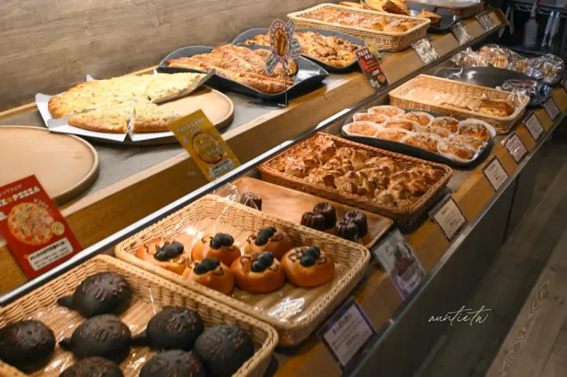 大約早上十點多到達店裡時,客人就不斷上門。一走進店裡,就能聞到超香的烘焙麵包香氣。這股香氣讓原本不太餓的人,一看見店裡麵包種類多,加上還有甜點,就會忍不住夾了好幾個麵包,打算晚上回飯店繼續享用。店內還有紅磚砌成的烤爐,在店裡待一陣子,就能看到麵包不斷出爐。店內到處都有可愛貓咪的圖案,整體環境非常可愛。