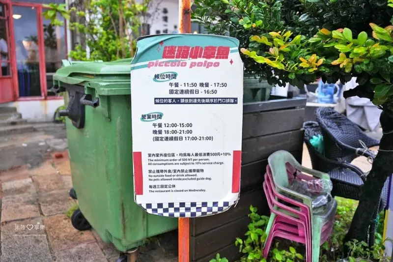 在恆春這座充滿活力的古城,迷路小章魚餐酒館以其輕鬆愜意的氛圍和精緻的菜色脫穎而出,成為墾丁餐酒館的代表之一,店內空間雖然不大,但溫馨的佈置讓人感到放鬆,無論是室內座位區還是戶外能夠欣賞海景的位置,都讓人能夠好好享受一頓飯的時光,每人最低消費為500元,加上10%的服務費,就能享受到物超所值的美味。