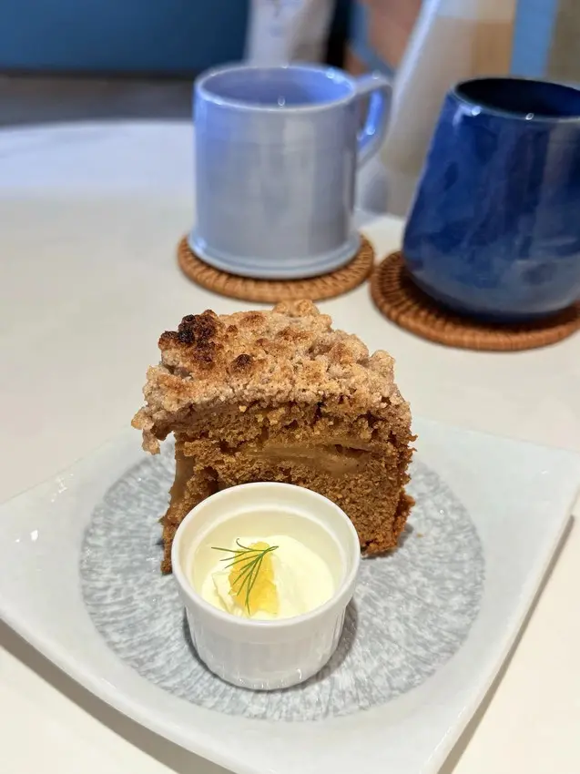順著回飯店的路,經過了「自己的房間」咖啡甜點店,便決定進去看看。這家店位於台南市中西區新美街160號,營業時間是每天下午1點到晚上9點,全年無休。室內的用餐區域陳設充滿了巧思與心思,讓人感到舒適。雖然這裡規定每人最低消費是一杯飲料,但因為個人因素無法飲用含咖啡因或冷飲,店家非常體諒,甚至接受外帶飲料回飯店給家人享用,服務態度令人讚賞。這次在自己的房間,點了黑糖牛奶,女兒表示很好喝,另外點了餅乾和蘋果磅蛋糕。蘋果磅蛋糕在溫熱時享用最好吃,口感扎實且不會過甜,美味度得到高度肯定。