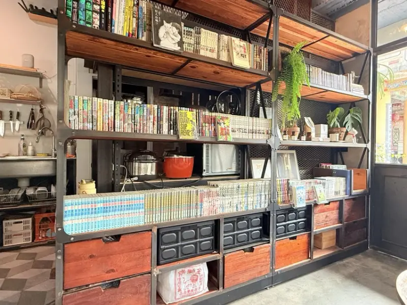 果核抵家咖啡廳位於台南市中西區民族路二段317巷3號,這間咖啡廳同時也是一間民宿,特別的是,它是由五月天瑪莎的妹妹所開設的。果核抵家走的是典雅的英倫風格,地點就在一間寺廟的旁邊,形成一種獨特的畫面,可以先拜拜再享用下午茶。這裡的交通非常便利,從台南市火車站搭乘公車77號到赤崁樓站下車,只需步行1分鐘即可抵達,若是搭乘計程車或Uber,也只需要約6分鐘車程。店內用餐區的櫥櫃上擺放了許多漫畫,供客人在等待或用餐時取閱。果核抵家的營業時間是每週二到週六的早上9點30分至下午4點,週日與週一休息。