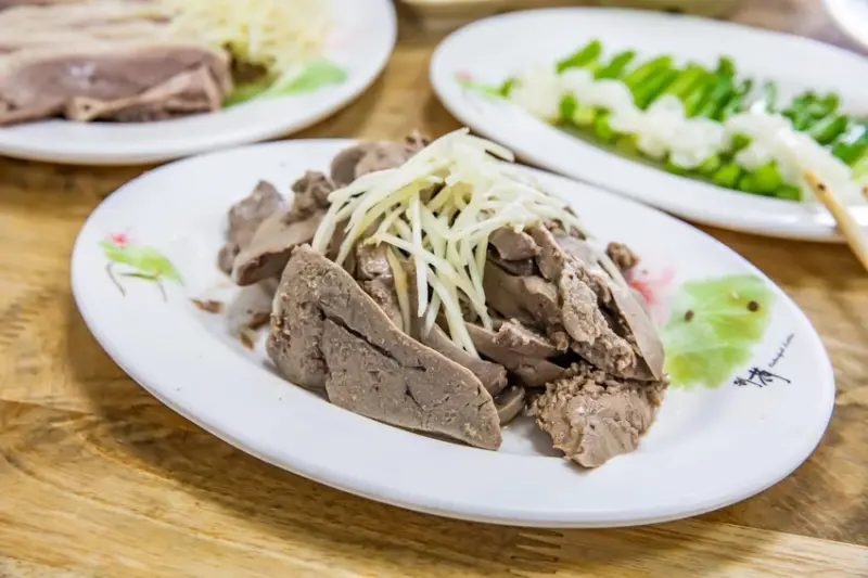 鵝肝是許多饕客推薦的必點品項。這裡的鵝肝吃起來非常嫩,幾乎可以說是入口即化。而且鵝肝特有的內臟味道處理得很好,不腥反而很鮮甜。因為鵝肝有加入鹽水滷汁川燙過,所以就算不沾醬,直接吃也非常好吃。
