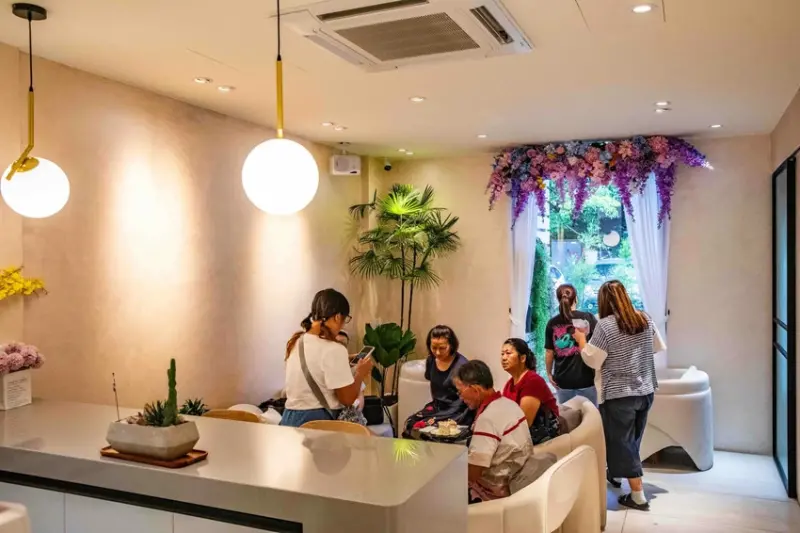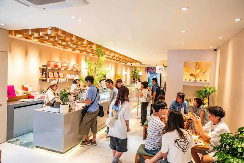 常紅蛋糕店內走的是清爽自然風格。整體使用了大量的木質元素搭配綠色植栽,營造出一種溫柔又暖心的氛圍,讓人感覺像走進了輕盈的森林裡。店前方設有明亮的蛋糕櫃與手沖吧台區。後方還有舒服的沙發區,不論是想放空發呆還是朋友小聚都很適合,不只好吃也超級好拍。