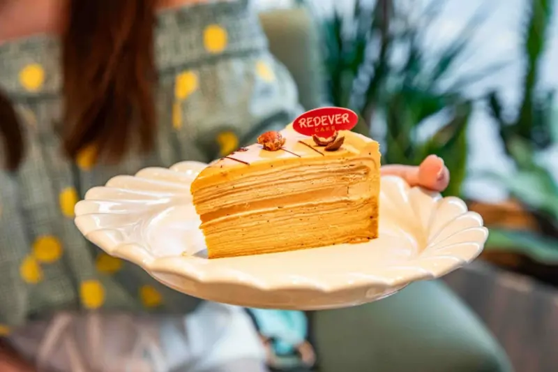「泰式奶茶千層」也是一道具有特色的甜點。泰奶千層一入口,就是熟悉的泰奶香氣。它的茶韻濃郁厚實、奶味順口,餅皮薄而柔,奶霜吃起來輕盈不膩,甜度也收得剛好,吃起來滑順又療癒。