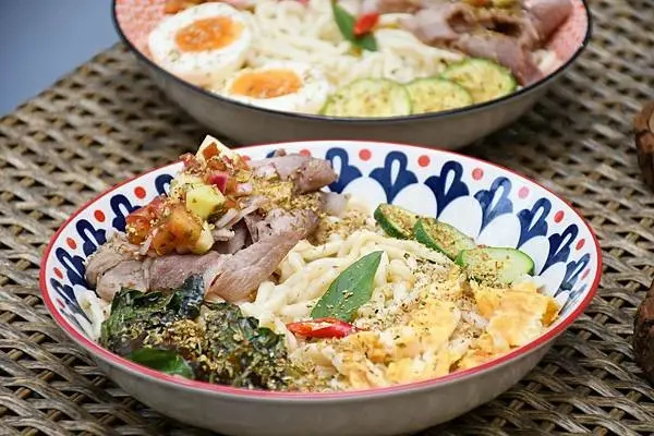 「閒鹹醬五花肉拌麵」售價為120元。這道麵雖然是很日常的搭配,但吃起來清爽,且不會淡而無味。醬汁的鹹香讓人涮嘴,香料粉也打造了豐富的層次。