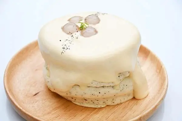 「伯爵白玉舒芙蕾」售價為150元。這道甜點結合了伯爵茶和白玉兩種元素,帶來美好的火花。舒芙蕾烤製後,呈現出乳感慢慢流下的誘人畫面。伯爵的清香搭配奶香濃厚,讓人吃起來就像嘴中喝著濃郁系的伯爵奶茶。其中的白玉吃起來非常彈牙。