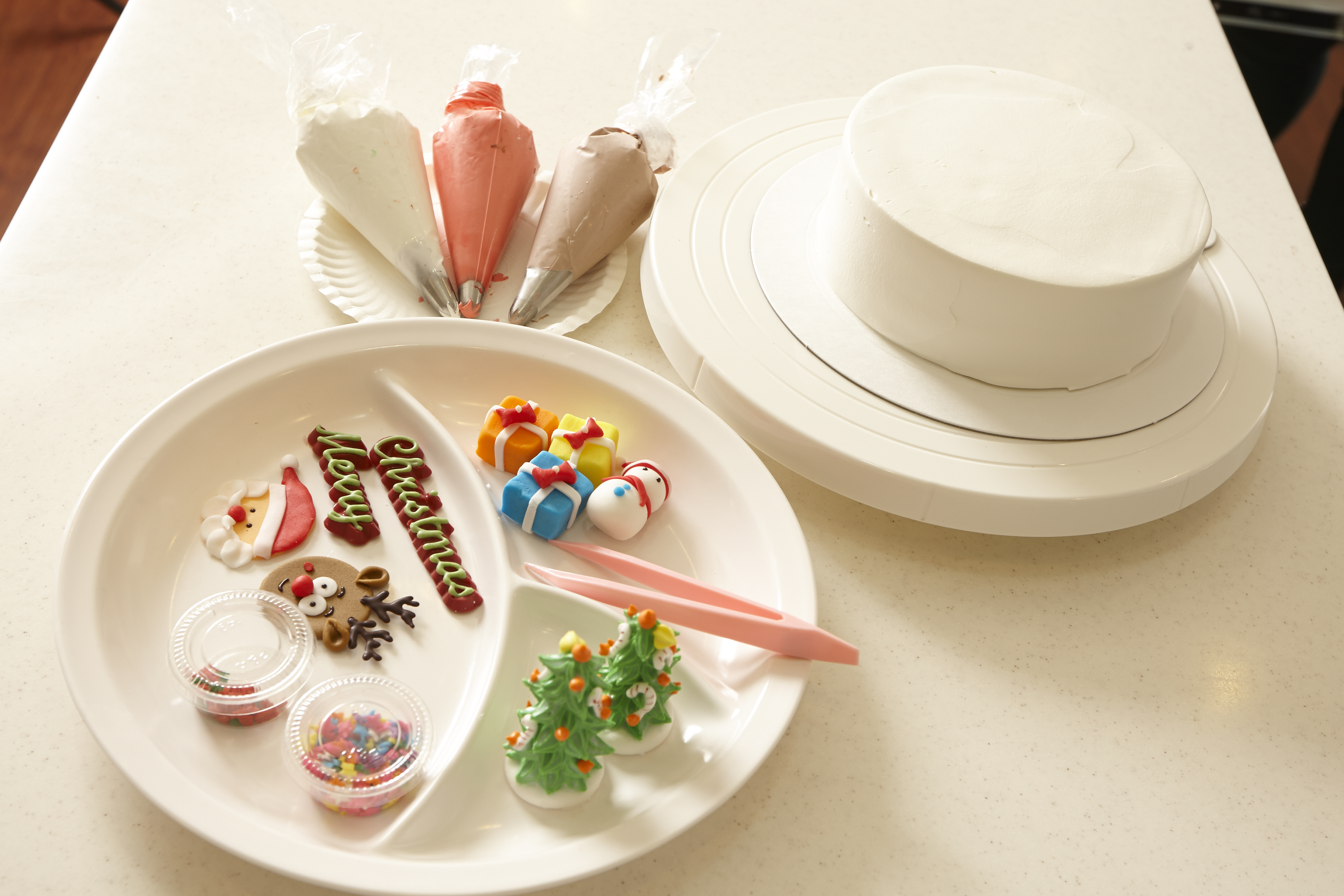 尺寸上提供杯子蛋糕、六吋與雙層蛋糕。選好蛋糕後,抹面之後挑選喜歡的鮮奶油、糖霜、水果、造型巧克力、餅乾、糖果,以及各種裝飾小物。開始進行DIY體驗。