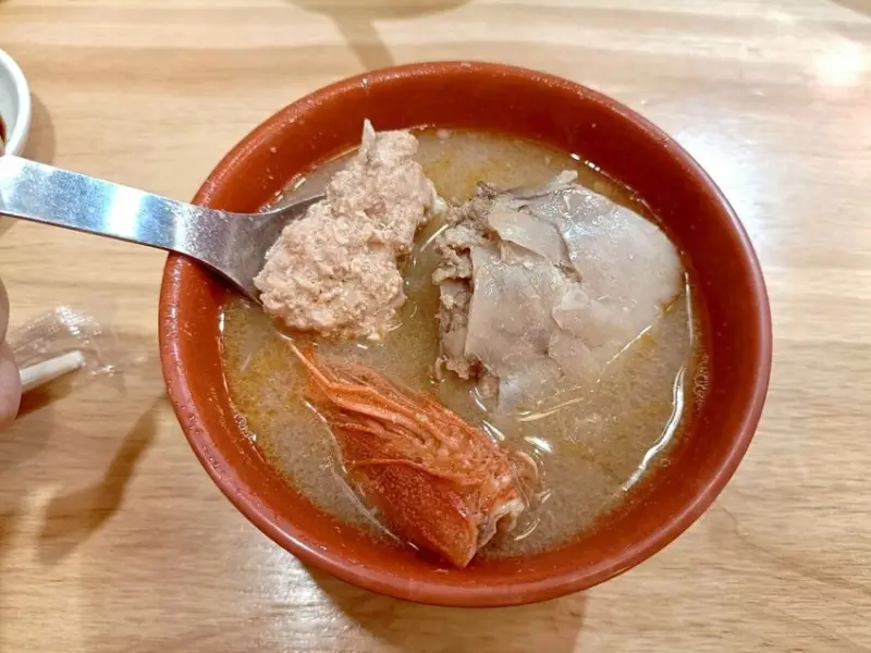 「今日魚市」的用餐空間分為一樓與二樓,入座後服務人員會引導使用桌上的QR碼進行手機點餐,但最特別的是結帳流程,顧客選好餐點確認下單後,必須拿著手機的QR碼到自助點餐機結帳,而且這台機器「只收現金」,不接受任何信用卡或電子支付,提醒計畫前往的民眾一定要記得攜帶足夠的現金,等待餐點的空檔,可以先去享用店家提供的免費冰檸檬水,以及最受讚譽的海鮮味噌湯,湯裡的魚肉和蝦頭用料毫不手軟,湯頭極為鮮甜,還可以無限續碗,光是這點就讓人覺得物超所值。
