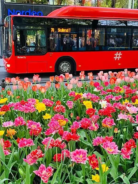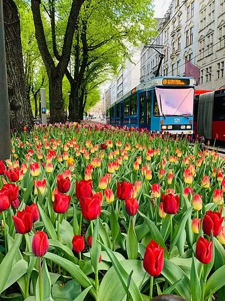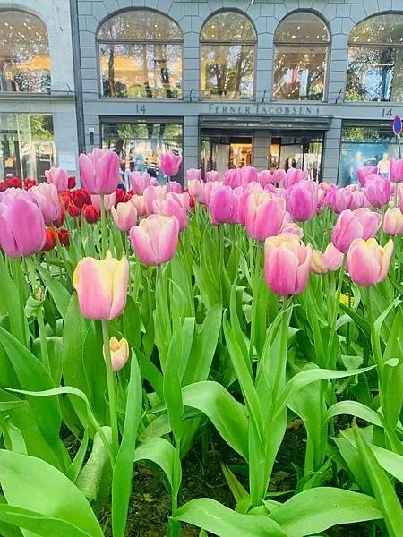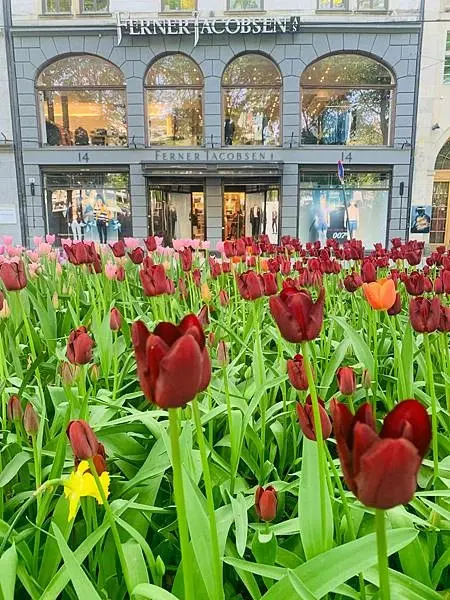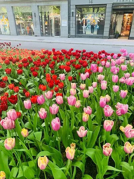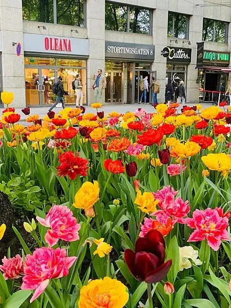 5月正是挪威進入春季的月份,市區裡的街道都種滿了很多鬱金香,真開心,公主沒去過荷蘭也沒看過這麼多的鬱金香,當然是興奮無比,拍、拍、拍照!也讓這次的旅程增多了一個難忘的美麗回憶!