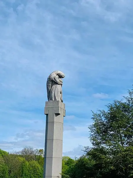 因這公園無需入門票,來的這天剛好是星期天,天氣又好,所以公園裡還蠻多人的。進入園區,就開始往裡面走去,先是一片大草地和兩旁的樹木。遠往過去就看到了「人生柱」。