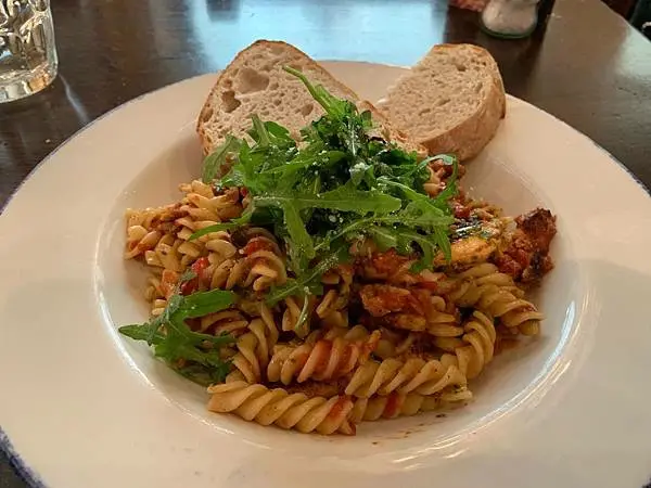 我選了烤雞塊番茄酱Fusilli螺丝粉,還有兩片烤吐司,好大一個份量。味道也很好雞塊不硬烤的剛好嫰嫩的。
