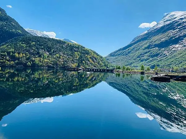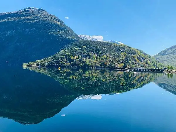 還沒上船前在碼頭拍到的峽灣倒影,真的超美麗,也是這次行程中難忘的一個景色。
