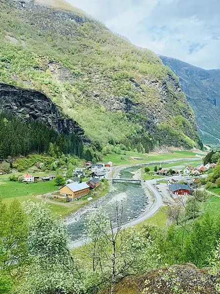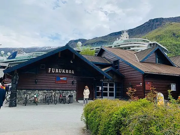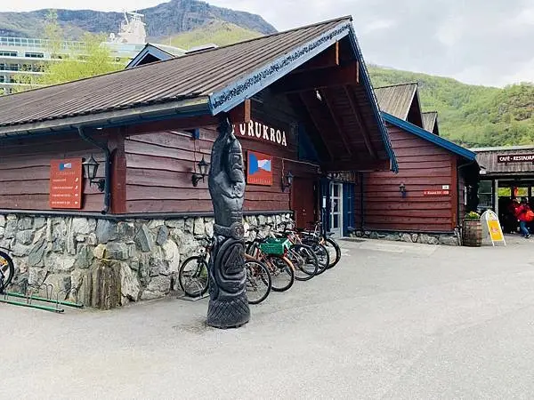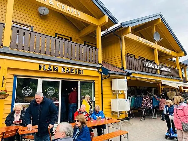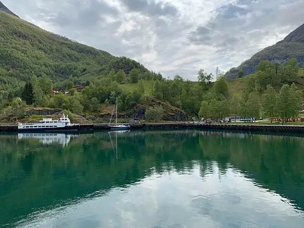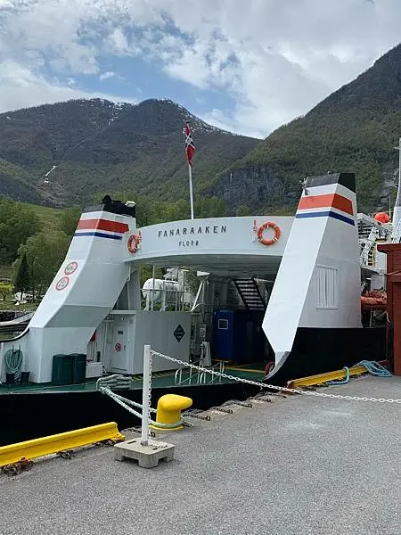 其實有些旅客會選擇從弗洛姆乘坐火車到米達爾Myrdal,再由米達爾乘坐火車回返弗洛姆,之後就上船游峽灣。這次我的行程是先從米達爾Myrdal乘坐弗洛姆火車至終點站弗洛姆Flam,就是大家來峽灣必坐的Flam Rail了。下火車之後就吃了個午餐、再來時間允許的話也可逛逛紀念品商店和參觀弗洛姆鐵路博物館,之後就乘坐渡輪游船游覽美丽松恩峡湾的其中一個分支納柔依峽灣Naerofjord。