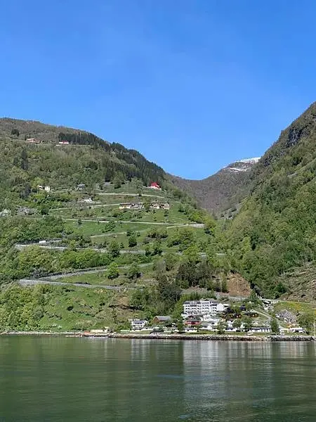 再來,納柔依峽灣Nærøyfjord是挪威西部松恩峽灣的其中一個分支,全長17公里,最窄處的水面僅有300米寬,沿岸多高山,風景優美如畫。