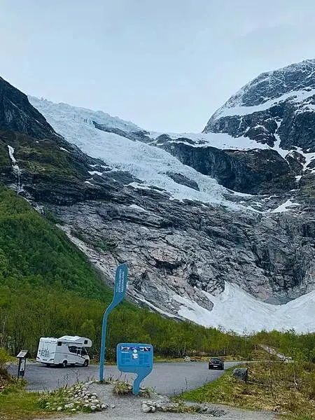 遊畢了納柔依峽灣也已近下午四點多,我們就往今晚下榻飯店。抵達飯店前路經一個Fjaerland地方有個冰川,大家也很興奮的在這做短暫停留拍照打卡再繼續前往Skei今晚的飯店所在地。