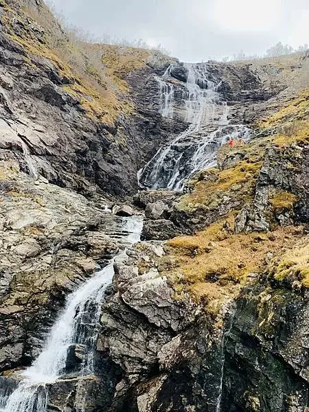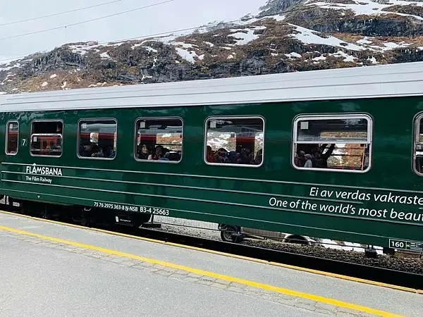 弗洛姆鐵路可以說是世界上最美,最陡峭的高山鐵路之一,從865米海拔的米達爾山區直下到艾于蘭峡湾的深處——弗洛姆,全长20公里。這段鐵路的80%路段建在55%坡度的山坡上。始建于1923年,歷時20年完成,被稱爲挪威最偉大的工程奇迹。在火車上欣賞山谷、瀑布、懸崖、雪山構成的這一幅幅风景畫絕對會是峡湾之旅最難忘的經歷之一(資料來源自穷游App)