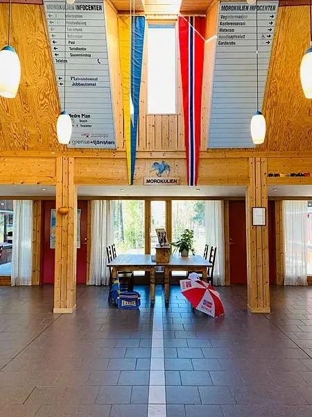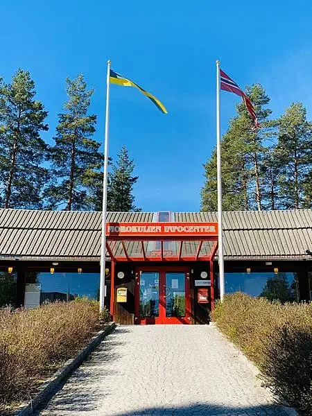 旅巴繼續前進,然後在挪威和瑞典的交接處Magnor做短暫停留休息,如果有買免稅商品的朋友,可以在這裡辦退稅。你也可以在這裡一隻腳踩在挪威土地上而另一邊的腳就踩在瑞典土地上,來個打卡照。我自己就在這買了張名信片寄回家給自己留做紀念,在這郵寄的明信片或信件都會同時蓋上挪威和瑞典的印章在郵票上,值得收藏。