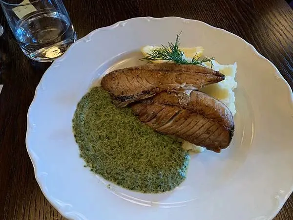 在瑞典的第一頓午餐,打約歐元10塊,有含咖啡茶麵包和淹菜。![]()
