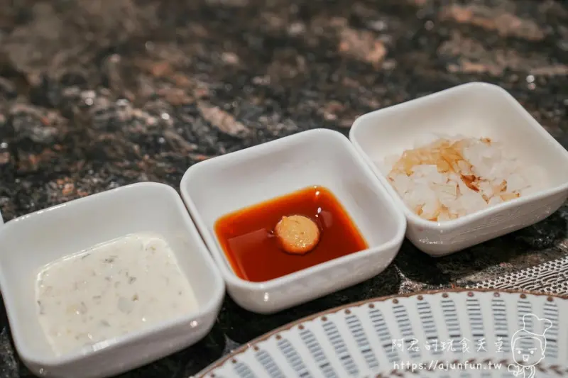 - 西班牙伊比利豬:煎至七分熟,提供三種不同的風味搭配。