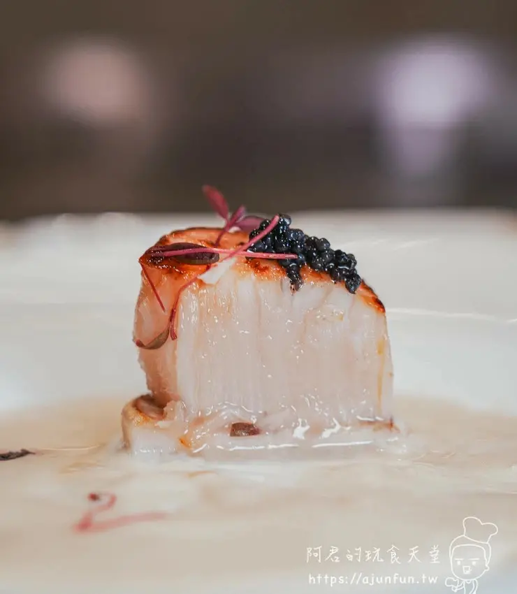 - 生食級干貝: 來自日本的生食級干貝,僅是香煎就甜得嚇人。佐以魚子醬和微酸的奶油白醬,那滋味,嗯,真的會讓人閉上眼睛好好享受。