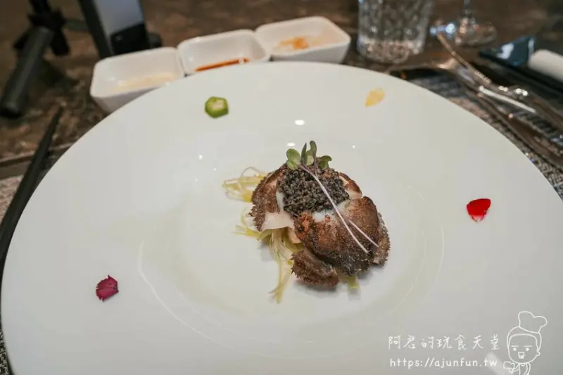 - 南非活鮑魚: 這口感我只能用「爽脆」來形容。搭配濃郁的松露醬和底下的蒜苗,奢華的香氣在口中久久不散。