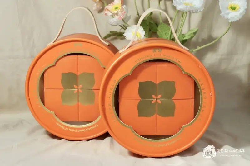 典雅設計大有巧思,圓盒象徵「團圓、圓滿」,除了皮革提把提升質感以外,還可站立!