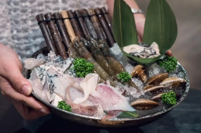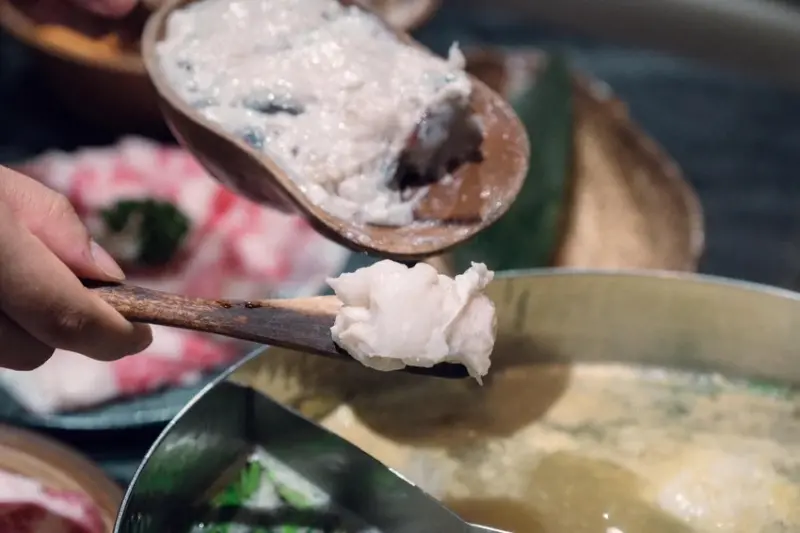 在肉品的選擇上,六饗 Masters 6同樣展現了對品質的堅持,這裡的主角包含油花分佈細緻的「黑樺和牛前腿肉芯」,肉質軟嫩,入口即化,另一款是帶有獨特堅果香氣的「西班牙伊比利梅花豬」,讓肉品的風味更具層次感,除了高品質的肉品之外,海鮮愛好者則不能錯過「極盛海鮮拼盤」,提供了海味十足的澎湃享受,為了追求口感的極致,店內也提供許多職人手工製作的火鍋料,像是口感鮮脆的「澎湖蝦仁花枝漿」、嚼勁十足的「吉古拉手工竹輪」,以及肉質飽滿的「台灣神農豬燕丸」,每一口都能感受到食材的新鮮度與師傅的用心。