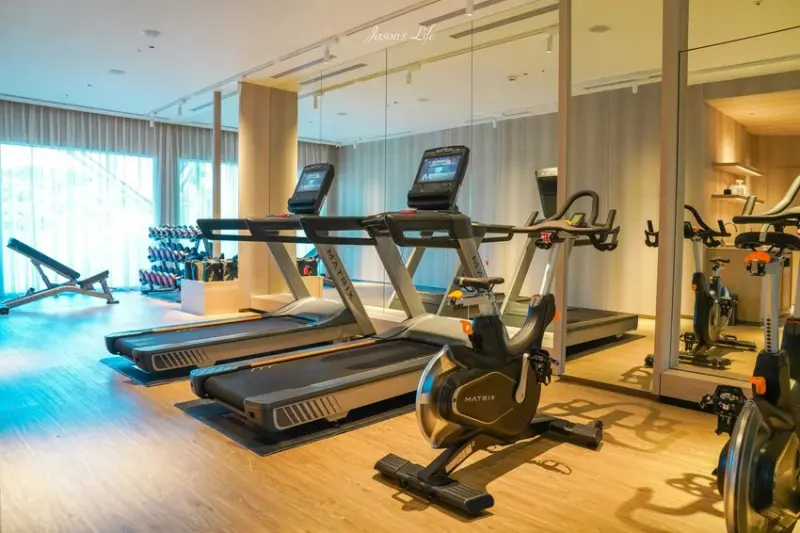 飯店最吸引人的設施,集中在頂樓的空中泳池與酒吧,這裡號稱是墾丁唯一的高空360度環型酒吧,擁有依山傍海的絕佳視野,白天可以享受日光浴與湛藍海景,傍晚時分更是欣賞夕陽落日的最佳位置,泳池四周設有舒適躺椅,還有一台鐵皮露營車作為裝飾,增添度假氛圍,入夜後泳池點亮燈光,搭配大螢幕播放影像,氣氛十足,酒吧的營業時間從下午4點至晚間11點,房客在入住時會獲得一杯飲品兌換手環,可免費兌換特調或無酒精飲料,體驗墾丁全新的夜生活風情,此外飯店也設有健身房滿足旅客的運動需求。