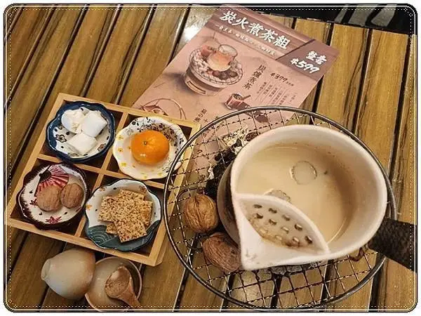 崧匠燒鳥屋台三峽店提供了一款非常新奇且極具儀式感的特色飲品:「炭火煮茶組」,這個煮茶組融合了東方茶文化與西式烘焙的趣味,非常好吃又好拍,擺盤細節滿滿,十分吸引目光,煮茶組提供了茶類五選一的選項,其中「玫瑰烤奶」是很受歡迎的品項,這款飲品融合了優雅的花香與濃郁的奶香,甜度調配得恰到好處,口感滑順不膩口,最有趣的是,在秋冬微涼的天氣裡,顧客可以利用炭火來烤棉花糖、酸甜的橘子以及店裡提供的茶點,這種體驗讓人感到溫暖且療癒,讓整場聚會的氣氛更加有感覺。