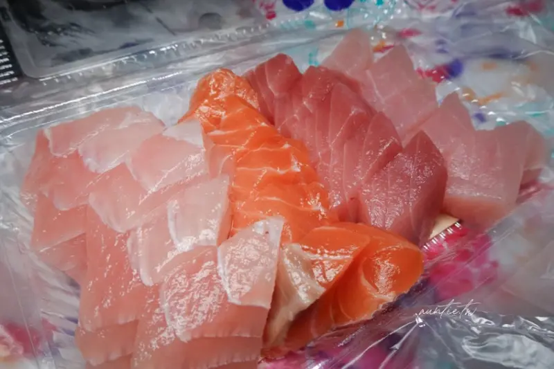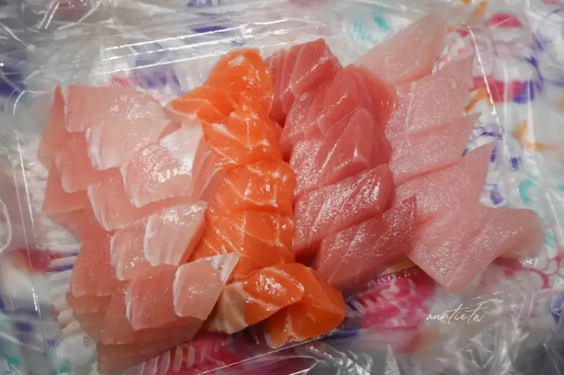 這家店的生魚片品項很單純,主要販售鮭魚、鮪魚、旗魚3種魚類,可以單買1種,也可以選擇綜合,1盒固定就是300元,這次點了綜合生魚片來嘗試,店家切的厚度很有誠意,但不是走大片路線,其中旗魚給的份量最多,整體吃起來新鮮度是足夠的,鮭魚的油脂香氣依舊最討喜,可惜的是,這次吃到的魚肉筋有點太多,導致口感略嫌粗糙,影響了整體的美味體驗。
