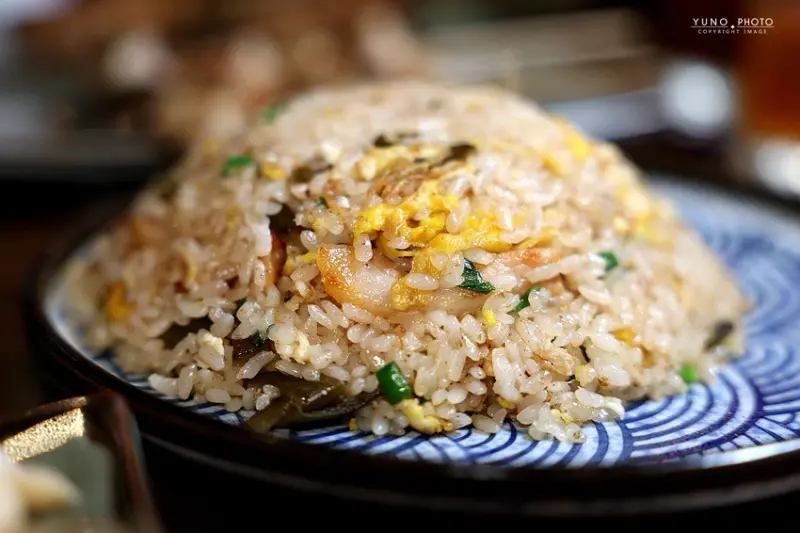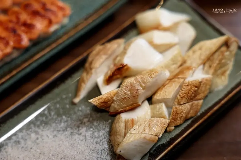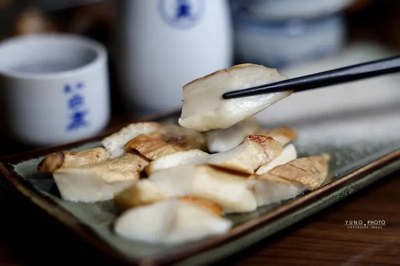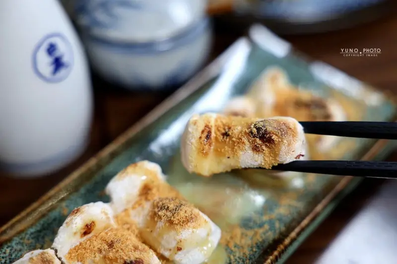 除了各式肉類串燒,「老味噌」的海鮮與蔬菜烤物也同樣出色,一份140元的「香烤中卷」,選用新鮮的澎湖中卷整隻炭烤,口感Q彈、海味十足,簡單撒上海苔粉就非常好吃,一份380元的「鹽烤杏鮑菇」,看似平凡卻考驗烤功,師傅將杏鮑菇烤得外層微焦,內裡卻依舊飽滿多汁,鮮甜無比,如果想吃點主食,一份110元的「招牌剝皮豬炒飯」絕對能滿足你,米飯粒粒分明、充滿鍋氣,份量也很有誠意,最後,別忘了留點胃給甜點,一份110元的「日式麻糬燒」,烤得外酥內軟,淋上煉乳、撒上黃豆粉,是完美的甜蜜收尾。