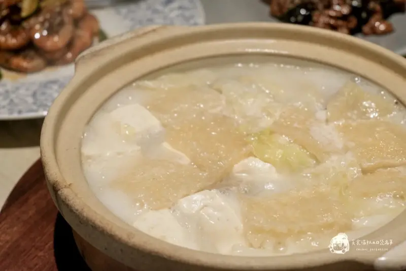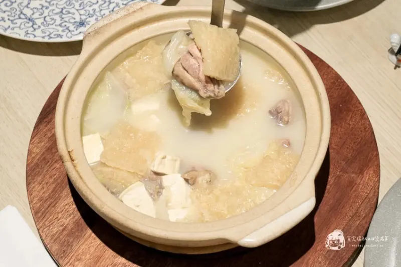裡頭還有加入白菜增加鮮甜、豆腐增加滑嫩,重點膨皮更是點睛之筆!每一塊都吸飽香醇雞湯~泡越久越好吃!