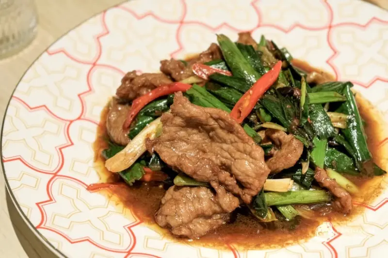 選用厚度剛好的牛肉片大火快炒,蔥香撲鼻、肉質鮮嫩多汁,是下飯首選!