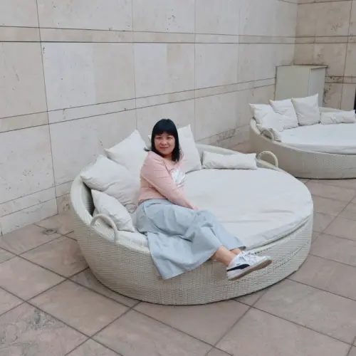 廟大門空地擺了各家的桌椅,坐在大樹下用餐,超貼近大自然,上方的大樹遮陽又涼快,微風徐徐吹來,偶而還有落葉飄下來。