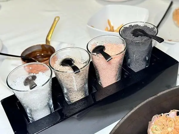 A CUT的牛排之所以能獲得米其林一星肯定,在於其對頂級牛肉的精準挑選與熟成工藝,其中,招牌推薦的「美國FLANNERY乾式熟成30日頂級帶骨肋眼牛排」是必嚐的品項,FLANNERY是舊金山北部的肉品供應商,專門挑選油花分佈均勻的荷斯登牛肉,經過30天的乾式熟成技術處理後,牛肉風味更加集中,煎烤後肉質醇厚,餘韻帶有天然的甘甜,另外,對於追求稀有風味的饕客,「澳洲A LEGACY純草飼老和牛乾式熟成30天帶骨肋眼牛排」是極致的選擇,這種純血和牛經過長達8年以上的天然放養,肉質油脂呈現罕見的鵝黃琥珀色澤,非常稀有,讓每一次品嚐都是純粹的奢華享受,顧客還可以搭配餐廳精選的法國鹽之花、夏威夷竹葉鹽、喜馬拉雅山玫瑰鹽或竹炭鹽等4種鹽款,來突顯牛排純粹的美味。