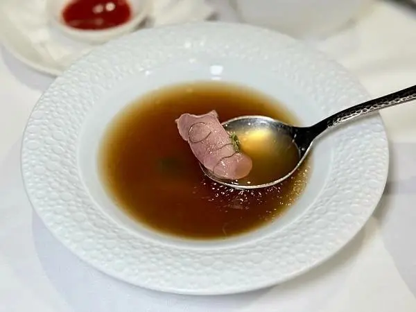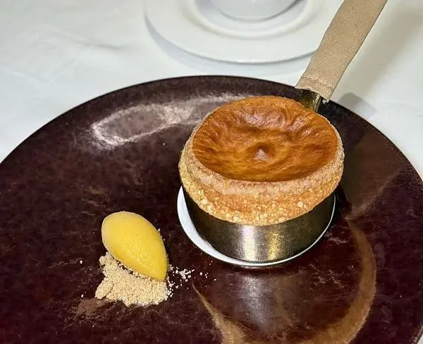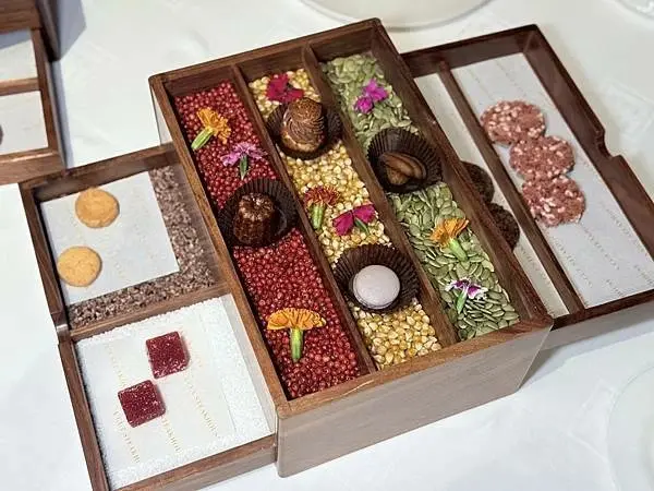 A CUT的湯品是許多老饕的心頭好,特別是他們的經典湯品「蘑菇濃湯」,由慢炒蘑菇濃煮而成,上方點綴著細緻的奶泡,喝起來菇味濃郁又順口,另外,「龍蝦濃湯」也是海味十足,湯底濃郁厚實,裡面還放有大塊的波士頓龍蝦肉,為一餐劃下句點的甜點同樣充滿巧思,「干邑香橙舒芙雷」口感入口即化且綿密,搭配百香果雪酪,冷熱交替,非常舒心,而「法式烤布蕾」則搭配了鹹香的味噌冰淇淋,創造出非常特別的滋味,如果恰逢慶生,店家還會貼心地準備小蛋糕給壽星,同時,餐後會招待「秘密花園甜點盒」,這是一個特製的三層木盒,裡面裝著可麗露、巧克力泡芙、費南雪等精巧造型的甜點,就像珠寶盒一樣美麗精緻,讓顧客在一片美好的氛圍中結束這場頂級的牛排饗宴。