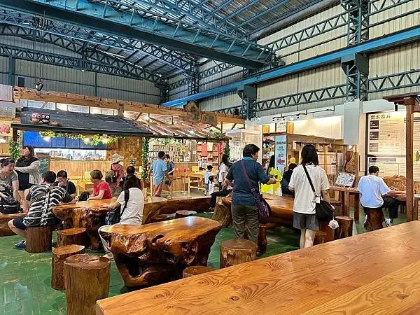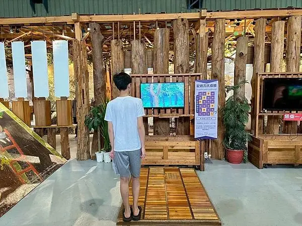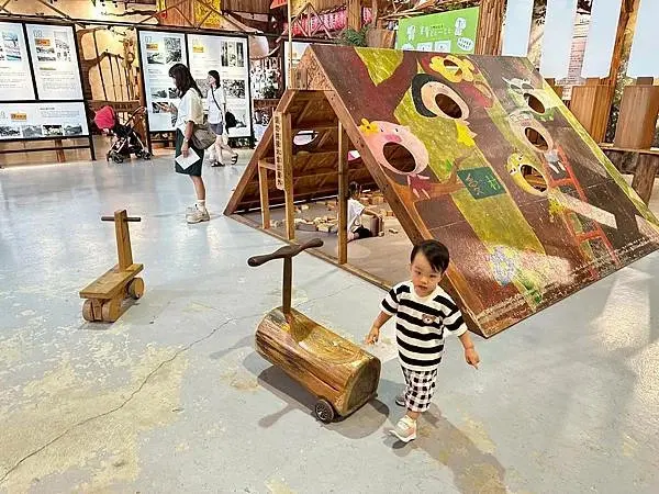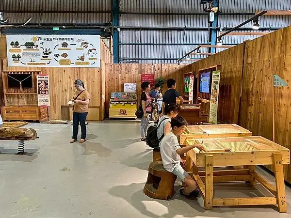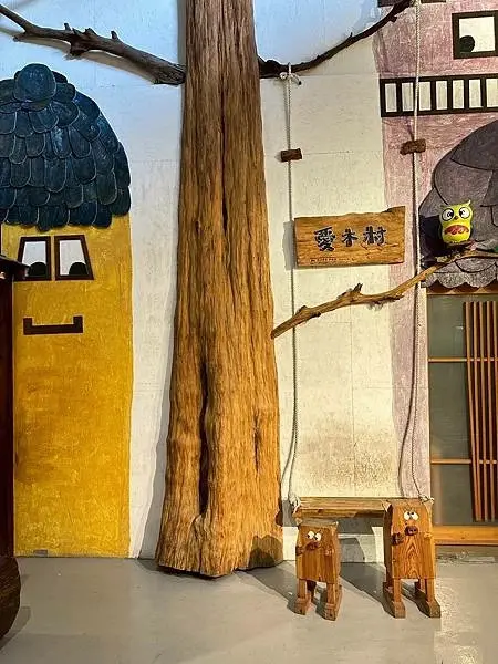對於家庭親子旅遊來說,愛木村提供了多個有趣的互動遊戲區,這是許多遊客停留最久的地方,在這裡有各式各樣的木製遊具供大小朋友使用,例如富有童年回憶的彈珠檯和踩高蹺,還有多媒體互動式闖關遊戲,深受小朋友們的喜愛,另外,愛木村還設有專門的遊戲室,提供木製的扮演區和溜滑梯,這些設施較適合幼童玩耍,如果想動手做出專屬紀念品,館內的DIY教室提供了多種木工手作課程,鼓勵親子一同動手完成,製作完成的成品還可以帶回家,這裡也有製香區和家具加工區可以參觀,在貓頭鷹雷雕站,遊客可以享受客製化服務,將專屬圖案或文字雷射雕刻在木材上,製作獨一無二的專屬小物,雷雕站旁還有可供拍照打卡的裝置設計。