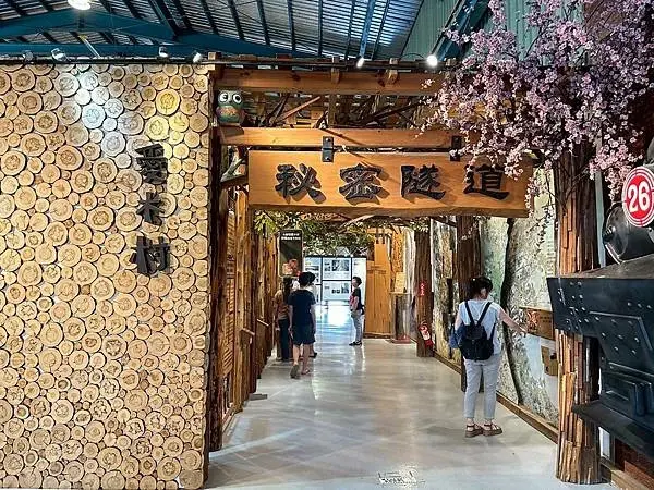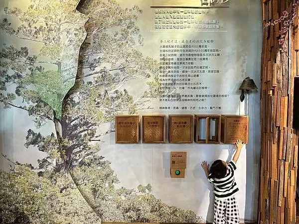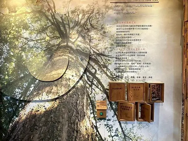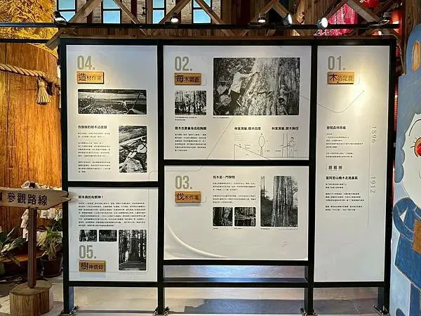 愛木村觀光工廠內提供了豐富的木材專業知識,幫助遊客深入瞭解台灣珍貴的五木,例如在秘密隧道中,遊客可以探索不同針葉木的奧妙,並透過導覽和互動裝置觀看詳細的台灣五木介紹,遊客也可以聞聞樹木內含的芬多精香氣,感受木材的療癒氣息,館內也設有「年輪的秘密」展示區,解釋了年輪一圈代表一年的概念,以及年輪會因為木材的品種和生長環境而有所不同,除了自然知識,館區也紀錄了木材的應用過程,像是「木的足音」就紀錄了祭祀樹靈、砍伐後集材搬運、挑選剖料到後續保存應用的每一個步驟,讓遊客瞭解木材從山林到生活中的整個旅程,這裡還有一尊日據時期的神木,樹齡已超過2000多歲的千歲紅檜爺爺,原本要運到日本建蓋神社,但因緣際會而留了下來,遊客可以在這裡祈福許願。